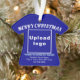 Frohe Weihnachten! Akryler Ornament mit fröhlichen Weihnachtsgrüßtexten, Ihrem Geschäfts- oder Firmennamen, Logo, Adresse und Telefonnummer. Designs sind hellblaue und weiße Texte auf blauem Hintergrund und auf T - Shirt-Form. Ornament zur Dekoration des Weihnachtsbaumes in Ihrem Geschäft, Shop oder Büro. Ornament, um Ihre Kunden in dieser Feriensaison visuell zu begrüßen und Ihr Unternehmen zu werben oder Ihren Markennamen zu fördern. Passen Sie es an und nutzen Sie es, um Markenbewusstsein zu schaffen. Bitte Karo des Erscheinungsbildes nach dem Hochladen von Logos und Schriftzeichen. Wenn Ihnen das Aussehen gefällt, können Sie jetzt Ihre Bestellung aufgeben. Wenn Sie das Logo und die Texte verändern und verschieben müssen, um auf dieses Ornament zu passen, wechseln Sie bitte im Design-Tool. Sie können auch andere Änderungen vornehmen, die Ihren Wünschen entsprechen, z.B. die Farbgestaltung des Ornaments, die Farbe des Schriftartes und der Stil des Schriftartes. Frohe Weihnachten! Wir wünschen Ihnen mehr Umsatz in dieser Feriensaison.