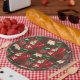 Weihnachtsblöcke-PAPER PARTY-TELLER-Ein Allover-Hintergrundmuster erstellt mit rot-grünen Blöcken getrimmt mit digitalem Heften. Die Blockfarben wechseln sich ab. In jedem Block befindet sich ein oder zwei Elemente mit einem Weihnachtsthema. Santa, Schneemann; Hirsche und Schneeflocken füllen einige der Plätze. Es ist ein lustiges, spielerisches Urlaubsmuster. Wählen Sie eine beliebige Zazzle-Teller-Größe aus, die verfügbar und auf Lager ist. Die Party-Versorgung wird koordiniert.