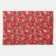 Niedliche Weihnachtshunde in festlichen Urlaubssälen. Grenz-Terrier mit Weihnachtsmannmützen, Geweih und Raute-Pullover auf einem roten Hintergrund mit verstreuten Ornamenten.