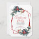 Eine elegante, moderne Aquarellbilder. Weihnachten heilige rote Beeren und rote Bullfinkenbukett-Grenze mit einem modernen roten geometrischen Rahmen. Maßgeschneiderte Weihnachtszeit-Party Einladung.