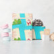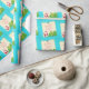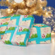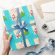 Cartoon Weihnachtsbrief von Weihnachten personalisierten Weihnachten (Weihnachten) Packpapier. Das Design umfasst ein Notizblock, einen Daumenstapel und Weihnachtsbäume auf einem hellblauen Hintergrund.