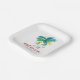 Diese viereckigen Weihnachtsabend-Teller sind mit einer hübschen Palme und Santa am Strand ausgestattet. Die Worte "Merry Beach-mas" erscheinen in handgeschriebener Typografie. Verwenden Sie die Vorlagenfelder, um Ihren benutzerdefinierten Text hinzuzufügen. Bestellen Sie kleine Mengen oder Teller in loser Schüttung. Eine festliche Wahl für ein Weihnachtsfest am Strand oder für Ihr Weihnachtsfest im Party. Einzigartige Aquarellkunst und Design von Victoria Grigaliunas