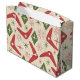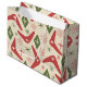 Mit dieser Weihnachtsgeschenktasche aus der Mitte des Jahrhunderts, die spielerische Bumerangs, Retro-Diamanten und zarte Schneeflocken in Avocado-Grün und weichem Rot bietet, können Sie Ihren Urlaubsgeschenken Vintagen Flair verleihen. Ideal für Vintage Liebhaber, atomare Alters-Fans und alle, die eine nostalgische Weihnachtsästhetik der 50er Jahre genießen.