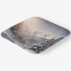 Schneebedeckte Pinien- und Berggipfel mit Schneeflocken und einem niedlichen Kaninchen