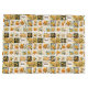 Schwarz-Weiß-Etiketten mit goldenen Blume, Blätter und Texten schaffen eine wunderschöne Collage von Weihnachtsgegenständen auf dieser Geschenktasche.