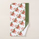 Personalisierte Weihnachtscreme Canes Bath Handtuch Set mit Bonbons mit roten Bögen und holzigen Mustern auf weißem Hintergrund und individuelle Personalisierung.