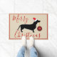 WeihnachtsDackel u. Weihnachtsmannmütze-Verzierung Fußmatte