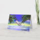 Ein tropisches Bild des Feiertags 3d mit einem niedlichen Delphin, der Weihnachten durch das Tragen eines roten Hutes und das Halten einer Zuckerstange zwischen verzierten Palmen feiert.