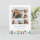 Eine süße und festliche Urlaubskarte mit 6 Fotos in einer Collage-Anordnung, mit einem illustrierten unteren Rand von handgezeichneten Häusern und Bäumen in Ferienfarben. "Frohe Weihnachten" oder Ihre Auswahl an Gruß erscheint unter Ihren Fotos, zusammen mit Ihrem Familiennamen und dem Jahr.
