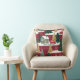 Ein charmantes Weihnachtsdörfchen mit gemusterten Kissen mit gemütlichen Kabinen, Vintagen roten Autos, schneebedeckten Kiefern und abfallendem Schnee vor festlicher roter Kulisse. Diese nostalgische Winterlandschaft bringt Wärme und Fröhlichkeit für Ihre Urlaubssaison. Der frohe Weihnachtstext kann nach Bedarf geändert werden, mit einem Namen oder einem anderen Gruß personalisiert werden.