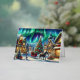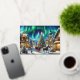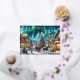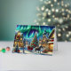 Eine malerische Winterwunderlandschaft entfaltet sich, mit einem zauberhaften, schneebedeckten Dorf, das im ätherischen Glanz des Polarborealis liegt. Ein majestätischer Weihnachtsbaum mit bunten Lichtern und bunten Ornamenten steht stolz im Zentrum des Stadtplatzes. Ein Pferd gezeichnet Schlitten, der mit festlichem Beifall glänzt, wartet geduldig auf seine Passagiere, während ein Schneemann, der mit Liebe beherrscht ist, in der Nähe Wachmann ist. Die Gebäude sind wunderschön mit Gartenmöbeln, Kränzen und bunten Lichtern dekoriert und sorgen für eine warme und einladende Atmosphäre. Die schneebedeckten Dächer und der weiche, fallende Schnee verleihen dem zauberhaften Ambiente eine wirklich bezaubernde Winterlandschaft.