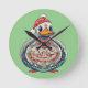 Weihnachtsduck mit einer Weihnachtsmannmütze Runde Wanduhr
