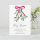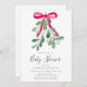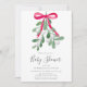 Mit dieser festlichen Einladung laden Sie Familie und Freunde zu Ihrer Weihnachtsdusche ein. Es ist mit Aquarellgrün mistletoe, einem roten Band und stilvollen Schriftzeichen geschmückt. Einfach anpassbar. Original Wasserfarbe © Michele Davies.