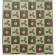 Vier Plätze in Grün und Bräune sind mit roten Ornamenten verziert, die mit weißen Schneeflocken und grünen Heiligen mit roten Beeren dekoriert sind. Weiße Nähte fügen eine dekorative Touch hinzu, die dem sich wiederholenden Muster das Aussehen eines Stepps verleiht und ein sehr gemütliches Gefühl für den Weihnachtsurlaub schafft.