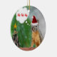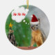 Weihnachtsverzierung mit einem Foto eines niedlichen Eichhörnchens, das trägt eine Weihnachtsmannmütze und ein Sprichwort "Ho, ho, ho!" Es gibt einen verzierten Weihnachtsbaum nahe bei dem Eichhörnchen. Eine Spaß Weihnachtsverzierung für alle squirrel Sie Liebhaber!