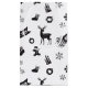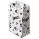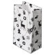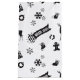 Eine Geschenktasche mit einer Schwarz/Weiß-Wiederholung von Weihnachtselementen - Strümpfe, Ingwer Brot, Schneeflocken, Rentiere, Weihnachtsschmuck, Kerzen, Weihnachtsbaum und die Worte "Merry Xmas" - in Abbildung. Es könnte für feierliche Weihnachtsfeiern geeignet sein.