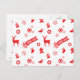 Eine nahtlose weiße Wiederholung von Weihnachtselementen - Strümpfe, Lebkuchen, Schneeflocken, Rentiere, Weihnachtsschmuck, Kerzen, Weihnachtsbaum und die Worte "Frohe Weihnachten" - in der Abbildung, vor einem roten Hintergrund.