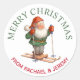 Ein niedlicher Weihnachtsaufkleber für Geschenke, Packungen, Weihnachtskarten, Gastgeschenke und mehr, dieser Entwurf enthält einen kreisförmigen Text, der eine farbenfrohe Abbildung eines Elfs auf Skiern umgibt. Bearbeiten Sie die Namen, die mit Ihren eigenen Namen oder anderen Texten angezeigt werden.