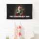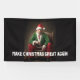 Ein Porträtbild von Donald Trump, der in einem braunen Lederstuhl sitzt und ein Weihnachtselkostüm trägt