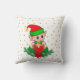 Niedliche Weihnachtself, Kiefer, Poinsettia & goldene Sterne auf weißem Hintergrund Throw Kissen.