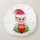 Niedliche Weihnachtself, Kiefer, Poinsettia & Stars auf weißem Rundkissen.