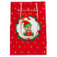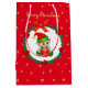 Weihnachtself, Kiefernkranz, Poinsettias & Sterne Mittlere Geschenktüte
