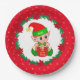 Weihnachtself, Kiefernkranz, Poinsettias & Sterne Pappteller