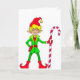 Dieses originelle Design zeigt einen farblich gekleideten Weihnachtself, der von spitzen Ohren bis spitzen Ohr lächelt.