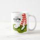 Gestreifte Elfbeine mit grünen Stiefeln beleuchten diese Tasse mit den Worten "Merry Elf'n Holidays" in schicker Schrift. PASSENDE Artikel in unserer Sammlung.
