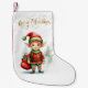 Weihnachtself mit einem Sack von Geschenken Kleiner Weihnachtsstrumpf