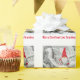 Geben Sie das Geschenk für Weihnachten mit personalisierter Geschenkverpackung. Ein Weihnachtself mit einer roten Weihnachtsmannmütze, die Geschenke auf einem schneebedeckten Zweig hält. Personalisierte Worte, die von jedem sein können. Derzeit hat die Worte "Frohe Weihnachten Liebe Oma".