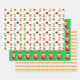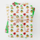 Weihnachtself, Glocken, Poinsettias und Freudenherzen auf goldweiß gestreiften Wrapping Paper Sheets.