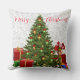 Weihnachtsbaum mit Geschenken und Weihnachtself werfen Kissen. Die Wörter "Frohe Weihnachten" können durch das Menü "Personalisieren" oder "Design bearbeiten" geändert werden. Niedliches, unterhaltsames und trendiges Weihnachtsdesign.