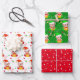 Weihnachtself, Zuckerrohr, Konfetti auf grün & rot Geschenkpapier Set