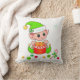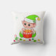 Moderne niedliche Weihnachtself mit Geschenkboxen, Weihnachtsbällen, Zuckerrohr und Stern auf weißem Hintergrund Weihnachtskissen. Name kann personalisiert sein.