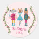 Niedlicher und festlicher Weihnachtstipensticker mit handgezeichneter Darstellung von Katze, Hund und Maus als Nutcracker Ballettfiguren. Der Hintergrund ist rosa.