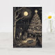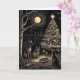 Eine herzerwärmende Weihnachtskarte mit einer gemütlichen Szene von einem fröhlichen Hund und zwei spielerischen Katzen, die eine festliche Schüssel mit Essen teilen. Set vor einem Hintergrund von bunten Urlaubshirnen und sanftem Schnee, diese bezaubernde Abbildung zeigt den Geist des Zusammenlebens und der Liebe während der Feriensaison.