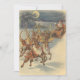 Vintage Illustration Viktorianisch Frohe Weihnachtsfeiertage mit Weihnachtsmann und seinem Rentier, der an Heiligabend Spielzeug ausliefert. Der Weihnachtsmann fliegt in einer kühlen Winternacht mit Vollmond am Himmel über den Schnee.