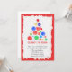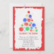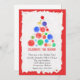 Eine lustige Holiday Party Einladung, die einen Weihnachtsbaum aus bunten Aquarellbaubeln mit rotem Rahmen darstellt.