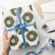 Eine Rolle Weihnachtsverpackungspapier bietet einen immergrünen Kranz mit roten Beeren - Spaß für Weihnachtsgeschenke