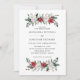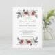 Diese schlichte und elegante Hochzeitseinladung bietet stilvolle, Aquarellbouquets aus moderner Vegetation und rot-weiße Weihnachtsgebäck auf weißem Hintergrund. Auf der Rückseite der Einladung befindet sich ein stilvoller, passender Weihnachtskranz.