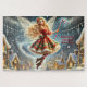 Dieses Puzzle verzaubert mit einer Weihnachtsmärchen, die anmutig über einem schneebedeckten Winterdorf schwebt und mit ihrem Zuckerrohr-Zauber Zauber verbreitet. Die Lichter des Dorfes in Verbindung mit ihrer festlichen Kleidung schaffen eine herzliche Urlaubsmantasie, die perfekt ist, um den Zauber der Saison zu erfassen.