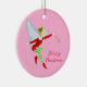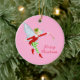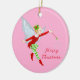 Weihnachtsschmuck in runder Form mit rosa Hintergrund und niedlichem Urlaubsmärchen. Passen Sie dieses Objekt an oder kaufen Sie, wie es ist.