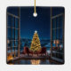 Ein wunderschön dekorierter Weihnachtsbaum steht stolz vor offenen französischen Türen und bietet einen atemberaubenden Blick auf eine schneebedeckte Landschaft unter einem Sternenhimmel. Zwei gemütliche Sessel flankieren den Baum und laden zu ruhiger Betrachtung und festlichem Beifall ein. Das warme Licht der Weihnachtsbeleuchtung und die flackernde Kerze schaffen eine Atmosphäre der Ruhe und der Ruhe.