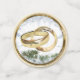 Bitte schließen Sie sich uns für unsere Winterhochzeit mit glanzvollen Gold- und Silberbaumdekorationen an, umgeben von salzgrünem festlichem Blattwerk mit frisch gefallenem Schnee in einem Winterwunderland.