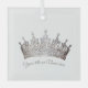 Dieses Ornament zeigt ein königliches, juwelenähnliches Kronenbild, das auf einen quadratischen Glasschmuck aufgedruckt ist. Personalisieren Sie den Text auf Ihren eigenen Titel, Namen oder Satz. OHNE Hintergrundfarbe, KEIN Außenrand und Silberfarbenkronenbild. Sie können diesen Eintrag personalisieren, indem Sie Text und Hintergrund ändern, falls gewünscht. Passen Sie dieses Element mit dieser Vorlage an oder kaufen Sie es wie gezeigt. Lizenziertes Bild