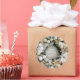 Auf dem Rundaufkleber befindet sich ein schöner schneebedeckter Kiefernkranz, der mit Weihnachtsbaumschmuck und Blume mit einem Gruß und Ihrem Namen oder Firmennamen in der Mitte geschmückt ist. PASSENDE Artikel in unserer Sammlung.