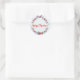 Dieser Oldtimer-Rundaufkleber ist mit einem festlichen Kranzdesign ausgestattet, das sich perfekt eignet, um jedem Gegenstand eine Touch Urlaubsjubiläum hinzuzufügen. In der Mitte werden die Worte "Frohe Weihnachten" in einem kühnen, kursiven Schriftart in einer fröhlichen roten Farbe geschrieben, die das Wesen der Freude und Wärme der Saison einprägt. Um den Gruß herum kreiert eine dekorative Auswahl an Winterflora mit roten, heiligen Beeren, dunkelgrünen Blätter und bezaubernden blauen Blumen ein traditionelles Kranzmotiv. Zwei Stilisierte Vögel, die mit volkstümlichen inspirierten Mustern detailliert sind, stehen graziös über dem Kranz und verleihen dem Design ein Gefühl von Leben und Bewegung. Der Hintergrund ist mit zarten Schneeflocken in zwei Blautönen bestreut, was einen subtilen Kontrast zu der weißen Basis des Aufklebers schafft. Dieses Aufkleber-Design verbindet klassische Weihnachtssymbolik mit einer Touch rustikaler Eleganz, ideal für die individuelle Gestaltung von Geschenkverpackungen, Grußkarten oder Feiertagsvorzügen.