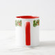 Weihnachtsfeiertag Keramik Kaffee Tasse wird mit einem festlichen Feiertag Tannenland mit Mistleton und roten Bändern gedruckt. Farbe Rot zwei Töne Passen Sie dieses Objekt an oder kaufen Sie, wie es ist. Bild