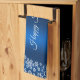 Weihnachts-Feier Weiße Schneeflocken Navy Blue Küchentuch. Einzigartiges, schönes, stilvolles Design. Leicht personalisiert zu sein. Schriftart Stil, Größe und Farben können geändert werden. Matching-Elemente sind verfügbar.